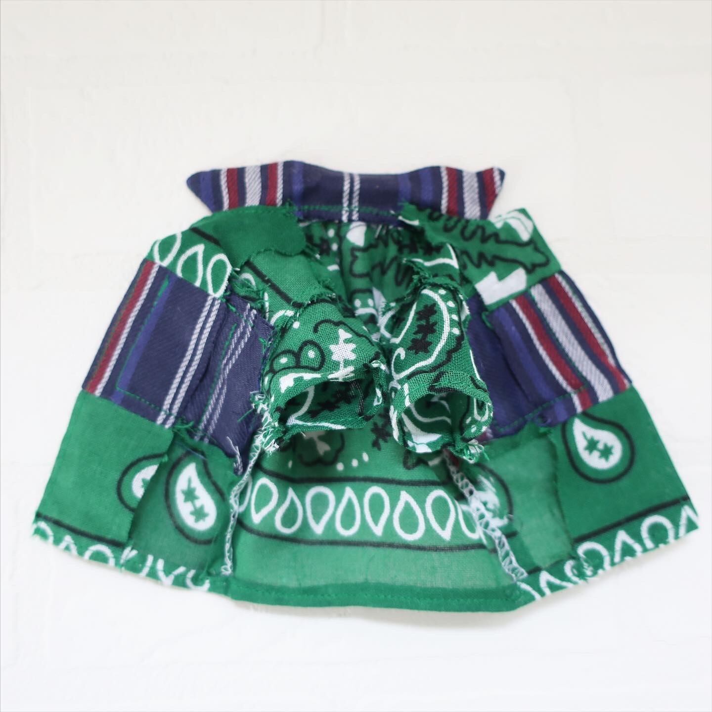 ペイズリー柄の布帛生地に、ポケットや襟部分に柄生地を切り替えたデザイン